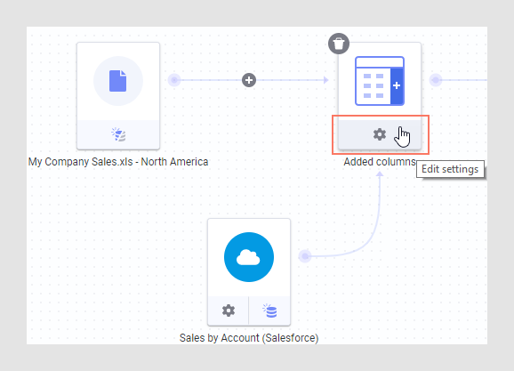 En el lienzo de datos, haga clic en el icono de configuración del nodo Columnas agregadas: