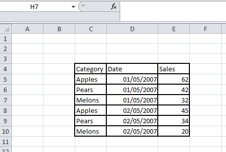 예를 들어 다음 Excel 스프레드시트에는 데스크 5곳에서 판매된 입장 티켓의 수가 포함되어 있습니다. 데이터가 짧고 넓은 형식으로 구성되어 있습니다. 즉, 스프레드시트에는 비슷한 데이터가 포함된 여러 개의 컬럼이 있습니다.