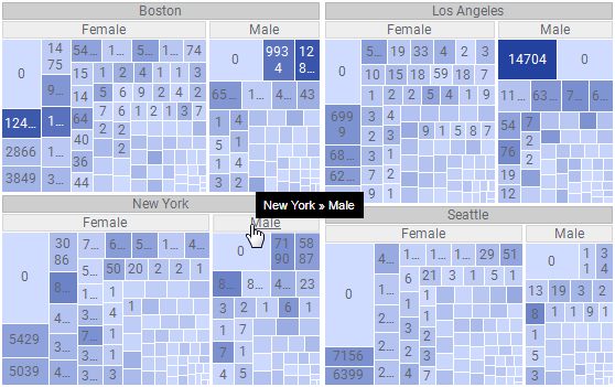 Si desea observar más de cerca a nivel de 'New York >> Male', haga clic en el encabezado 'Male' tal como se muestra abajo.