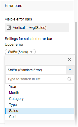 Au lieu d'utiliser une méthode d'agrégation prédéfinie, vous pouvez spécifier la longueur des barres d'erreur en écrivant votre propre expression. Ceci est un exemple d'utilisation d'une expression personnalisée.