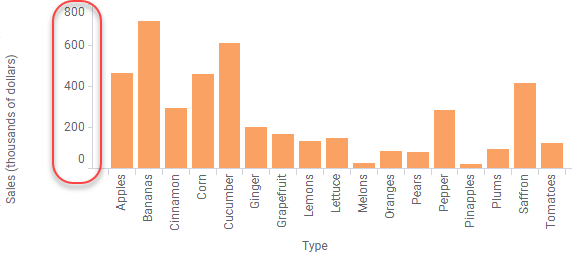 Lorsque la somme des ventes est affichée sur l'axe Valeur d'un histogramme, un grand nombre de zéros inutiles sont affichés dans les intitulés d'axe. En affichant plutôt la somme totale des ventes en milliers de dollars, les chiffres de l'axe deviennent plus petits et plus faciles à comprendre.