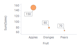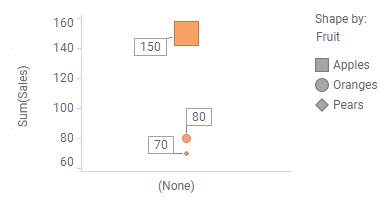 La répartition des données en plusieurs parties est effectuée en spécifiant différentes propriétés pour la visualisation. Par exemple, vous pouvez répartir les données selon différentes catégories sur un axe des X ou en attribuant des couleurs ou des formes différentes. Les propriétés de répartition disponibles dépendent du type de visualisation. Chaque fois que vous répartissez les données en utilisant une de ces propriétés, les données sont divisées en parties de plus en plus petites et sont représentées par un plus grand nombre de marqueurs.