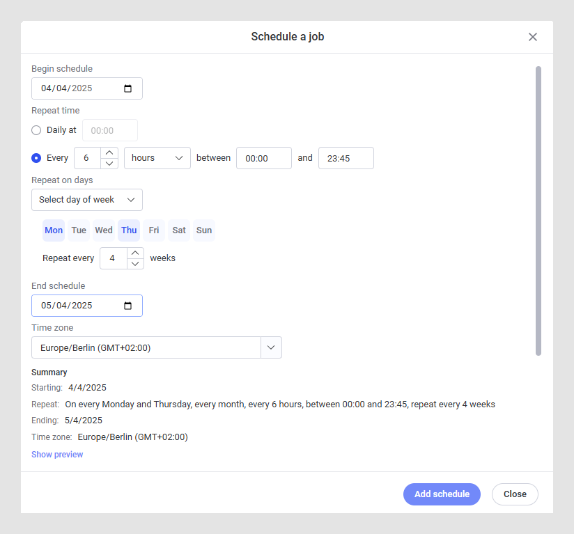 Spotfire client, you can schedule the job in the Spotfire web administration