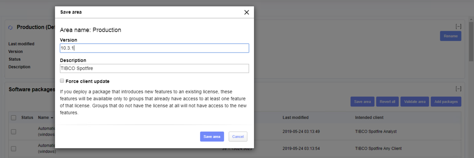 - Under Deployment areas, ensure that the correct deployment area is selected.
