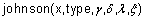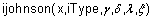| Johnson | Computes the density of the Johnson distribution (curve) defined by parameters JohnsonType, Gamma, Delta, Lambda, and Xi, for the Johnson variate value x | Johnson( x, JohnsonType, Gamma, Delta, Lambda, Xi) | ||