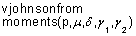 | vJohnsonFromMoments | Computes the inverse integral (Johnson variate value) of the Johnson distribution (curve) defined by moments Mean, StandardDeviation, Skewness, and Kurtosis, for the probability value p. Note that this can be computationally expensive, because the actual parameters for the respective best-fitting Johnson curve will have to be computed from the moments, every time this function is invoked. | vJohnsonFromMoments( p, Mean, StandardDeviation, Skewness, Kurtosis) | ||