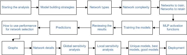 We model the above variables using the Automated Network Search (ANS) to relate the target variable to the inputs.