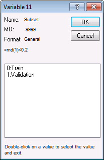 - Subset contains two codes – Train and Validation – which can be seen by double-clicking in the Code for training sample field to display the Variable code dialog box.