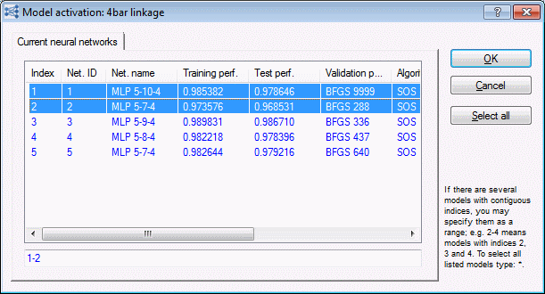 - Click the Select\Deselect active networks button, and in the Model activation dialog box, select the first and second models.