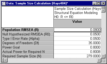 Click the OK button to display the Structural Equation Modeling: Sample Size Calc. Results dialog box.