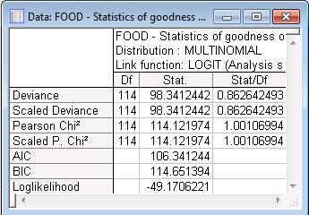 Click the Variables button to display the standard variable selection dialog. Select Food as the Dependent (response) variable, Length as the Continuous predictor variable, and then click the OK button. We can use all other default specifications, click the OK button to display the GLZ -- Results dialog box.