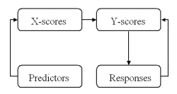 where Q is the y-loadings and F is the matrix of residuals that models the noise. The above equations represent the so-called outer relations of the PLS model. In addition there is also an inner relation that results from the interdependency of Y variables on X. As we shall see later, both the outer and inner relations can be built using the NIPALS algorithm (see NIPALS algorithm for PLS, below).