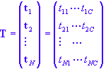 The N x C dimensional matrix T contains the scores of the principal components in the new coordinate system. In other words, it consists of the coordinates of the original observations in the PCA model. It is customary to arrange the scores such that t1 belongs to the principal component PC1, which captures variability more than t2, t3, ..., tc.