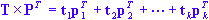 While the matrix P defines the principal component's scores, matrix T defines the representation of the original observations in the new coordinate system: