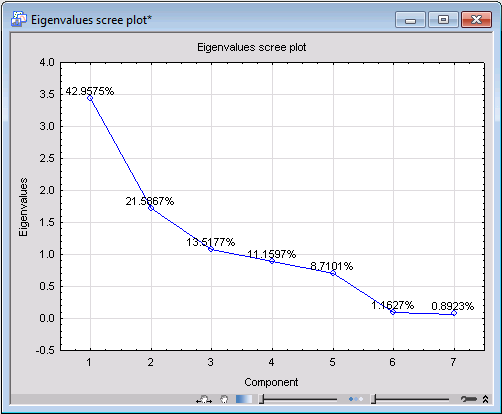 One of the fundamental quantities in PCA is the eigenvalues of the principal components, from which almost all properties of a PCA model can be derived. To generate the line plot of the principal eigenvalues, first select the number of the most significant components you want to display in the graph by adjusting the value of the