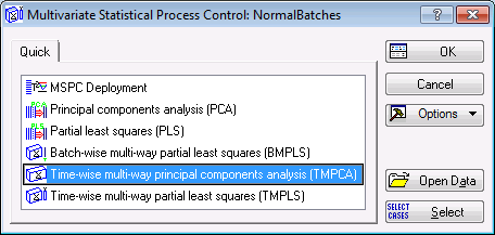 On the Quick tab, select Time-wise multi-way principal component analysis (TMPCA).