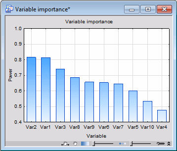 Also, you can review the modeling power of the variables in histogram format by clicking the Variable importance button with the graph icon.
