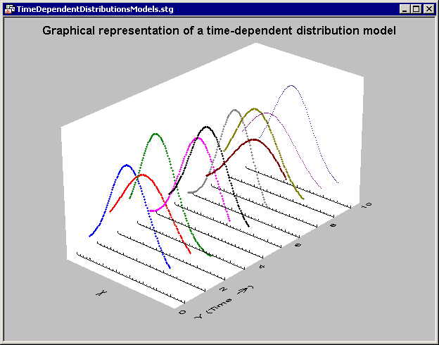 The graph shown here illustrates the basic approach: A variable characteristic X has a specific distribution (location, dispersion, shape) at each point in time (Y). Samples are taken from the process at different times, and hence from different distributions. To accurately gage the true capability of the process, it is necessary to apply the appropriate time-dependent distribution "model" that will specifically account for changes (over time) in location, dispersion, and the type (shape) of the distribution (e.g., normal vs. non-normal). Given an appropriate model, the process capability can then be estimated based on the expected (and/or observed) resultant distribution, given the changes of the individual (instantaneous or at-one-specific-point-in-time-only) distributions.