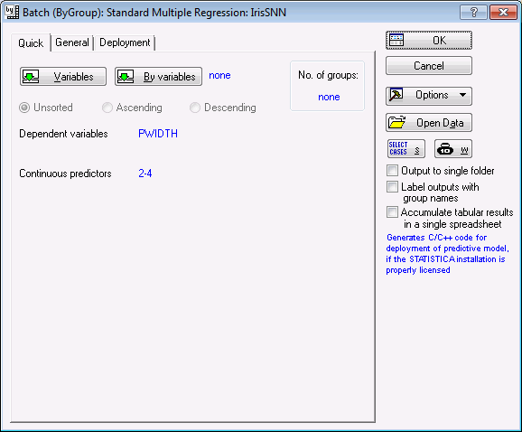 It is the goal of this example to draw the above conclusions from the study of the Iris data set using the statistics and graph tools available via Statistica Batch (ByGroup)Analysis.