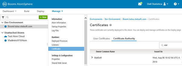 Note: If you plan to use the HTTPS version of the Statistica endpoint (which we recommend, considering Basic authentication characteristics), make sure that the Boomi Atoms on which the integration process is to be deployed have the appropriate certificates imported. Otherwise, Boomi fails to connect to that endpoint.