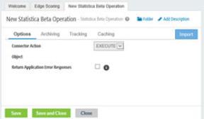 - Select Save and Close on the Operation Configuration dialog box. You have now completed the configuration of the Statistica Connector.
