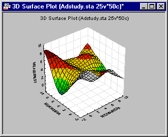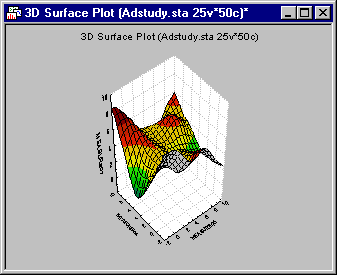For example, the default proportions of the axes in the graph above are 1:1:1 (i.e., the proportions of the X, Y, and Z sides are of equal length and form a regular cube). By changing the respective values, you can "flatten" (e.g., increase the proportions of the x- and y-axes compared to the z-axis: 1:1:.5)
