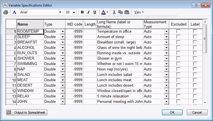 Classic menus. From the Data menu, select All Variable Specs .