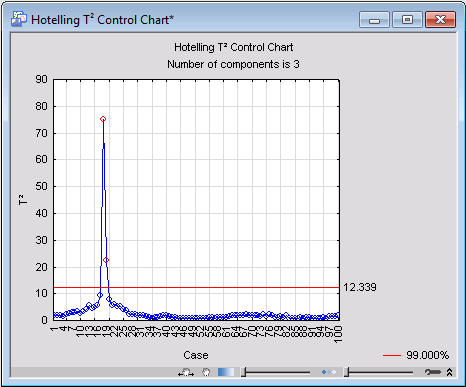 You can also use the options in the Score control chart and summary group box to analyze the data set on a variable-wise basis. For more details, see the documentation for the PCA Results dialog box and the PCA Example.