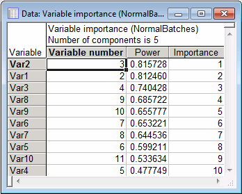 To view the variables in descending order, on the TMPCA Results dialog box - Quick tab, verify that the Sort variables by importance check box is selected, and then click the Variable importance button with the spreadsheet icon: