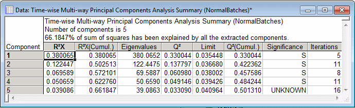Next, click the OK button in the TMPCA dialog box. This will initiate the NIPALS algorithm and, when complete, the TMPCA Results dialog box will be displayed.