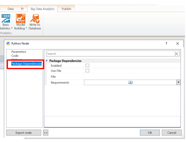 The Package Dependencies tab of the Python node supports the use of virtual environments and the use of requirements files to specify dependencies for installation.