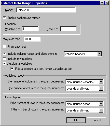 For further details on the External Data Range Properties dialog, see External Data Range Properties.