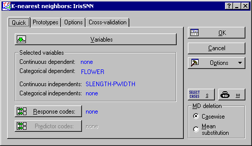 Select K-Nearest Neighbors on the Quick tab, and click the OK button to display the K-Nearest Neighbors dialog. You can also double-click on K-Nearest Neighbors to display this dialog.