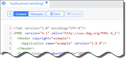 AMS supplies a text editor to manage your model file's content or metadata. In practice, it may be more efficient to create and edit your file in the model's native editor prior to importing the file into AMS for editing, management, or deployment.