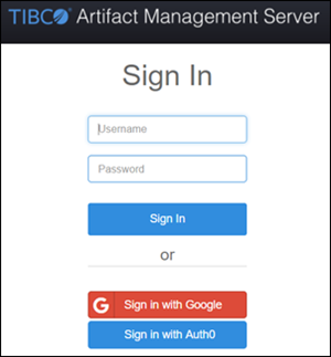 Enter your AMS user name and password in the TIBCO Artifact Management Server welcome screen and click .