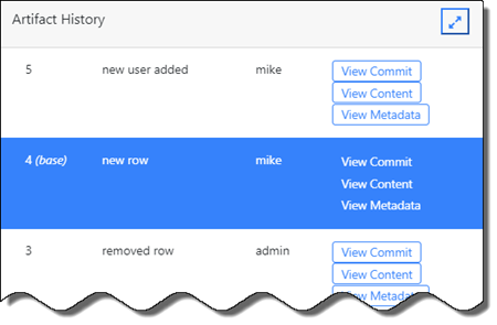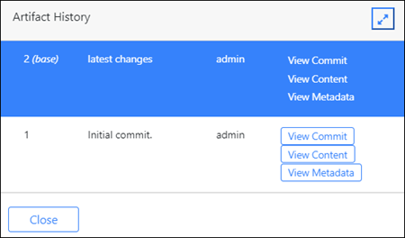 AMS provides a record for every project and its artifacts. History includes every approved commit of an artifact, by version number. The Artifact History also displays a description of what changed between commits, as well as the option to view the actual change contents.
