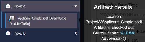 The Artifact Editor is where you build and edit decision table artifacts. By default the Artifact Editor is located on the right side of the web client. Working with artifacts using the Artifact Editor is described in Building Rules for Decision Table Artifacts.