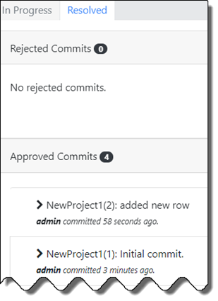 The Resolved view displays approved or rejected changes to artifacts. Clicking Details displays the changes you made to your local working copy.