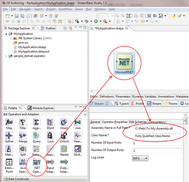 This section describes the properties you can set for a Microsoft .NET operator, using the various tabs of the Properties view in StreamBase Studio.