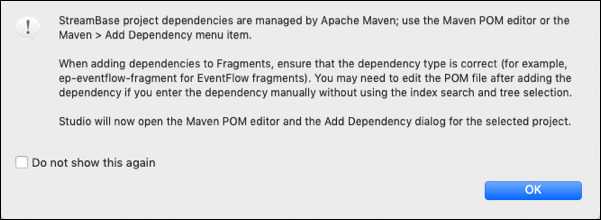 ep-liveview-fragmententry (perhaps because your local Maven repository has artifacts from previous StreamBase releases), select the entry whose version number matches the current StreamBase release.Click .