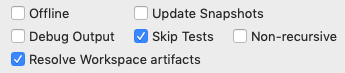 Select the Skip Tests and Resolve Workspace artifacts checkboxes.