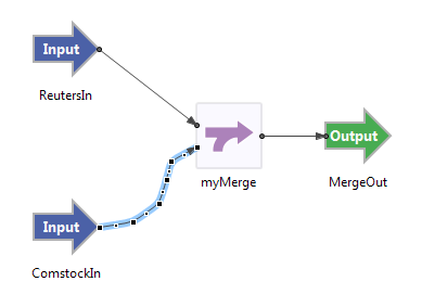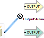 This feature works for components and adapters that have at least one input and at least one output port in their default configurations. If an adapter has more than one input or output port by default, the arc is connected to the first input port or first output port (or both). Components with one default port such as the Metronome operator and most adapters are dropped onto the canvas at the arc's location instead of inserting into the arc.