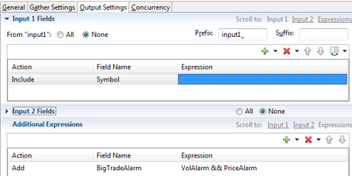 nFields grid is open, the Prefix field is not blank, but is filled in for you withinput1_for Input 1 Fields,input2_for Input 2 Fields, and so on. You can change the prefix or remove it, as your application requires. It is a best practice to leave the default prefixes in place, or use similar prefixes, to help distinguish same-named fields on incoming streams. -
