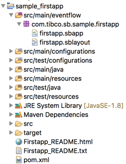 paths such as src/main/eventflow/com/tibco/sb/sample/firstapp to locate files.