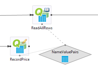 On the EventFlow canvas, the Query operator has an overlay icon to show whether it represents a Read, Write, or Delete operation. The arcs that connect it to Query Tables also have distinctive styles that indicate the type of operation.