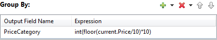 In the Expression column, enter the name of a field in the associated data construct by which you want output tuples grouped, or enter an expression that selects a group of rows in the data construct based on field values.
