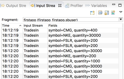 In the Input Streams view, notice that the list of trades value has entries that are both above and below the threshold of 10000 that was set in your Filter operator. For example: