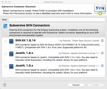 Subversive SVN Connectors are external libraries with their own licenses. If you do intend to use Subversive, many engineers have found the SVN Kit's pure Java implementation the better choice. For further assistance, see the article Installation of Subversive SVN Connectors in the Subversive documentation.