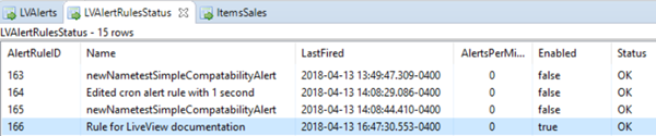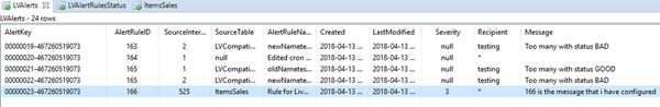 Check in the LVAlertRulesStatus table to see if the alert was created as expected.