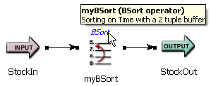 For the Bsort operator, the tooltip shows its name, component type, and describes the sort operation defined.